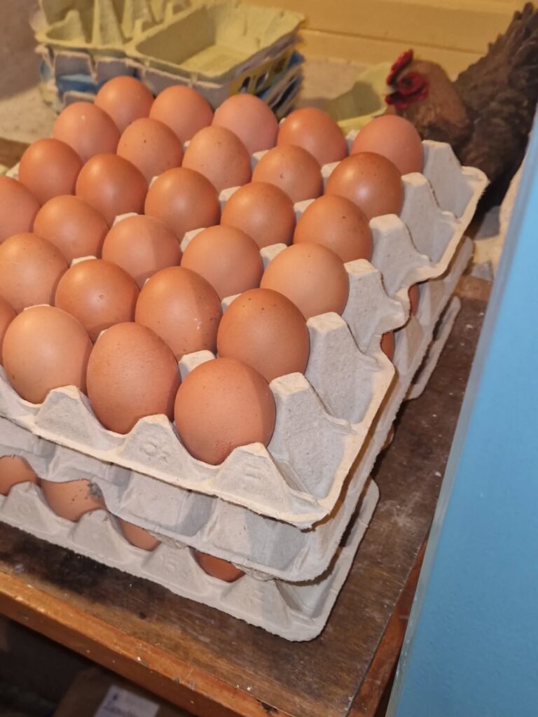 - Natuurlijk hebben we ook kakelverse eieren, en diverse soorten kaas en zuivel.